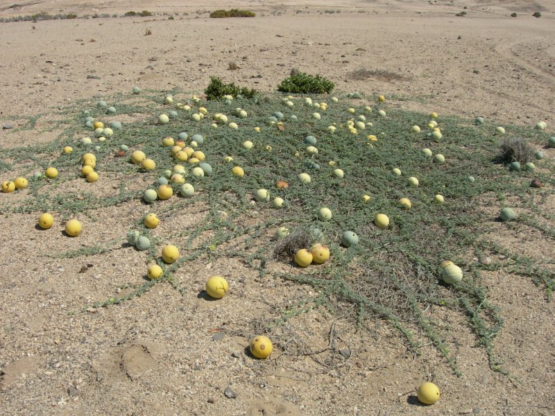 Il frutto che dalle mie parti si chiama “anguria” (Citruulus lanatus) si chiama anche “cocomero”, “pateca”, “cetrone”, “zipangolo”, “sarginesco”, “melone d’acqua” (come in inglese, tedesco e molte altre lingue) oppure “sandia” (come in spagnolo, dall’arabo sandijja). È originario dell’Africa subsahariana, il suo parente selvatico più stretto pare essere Citrullus ecirrhosus, che vedete in foto. Altro parente stretto è il coloquintide (Citrullus colocynthis), che vive nel sud del Mediterraneo, comprese alcune isole minori siciliane. Il suo frutto è molto amaro ed ha un drastico effetto purgante. È probabilmente il frutto citato nella Bibbia, nel Secondo Libro dei Re, ai versetti 39–40: