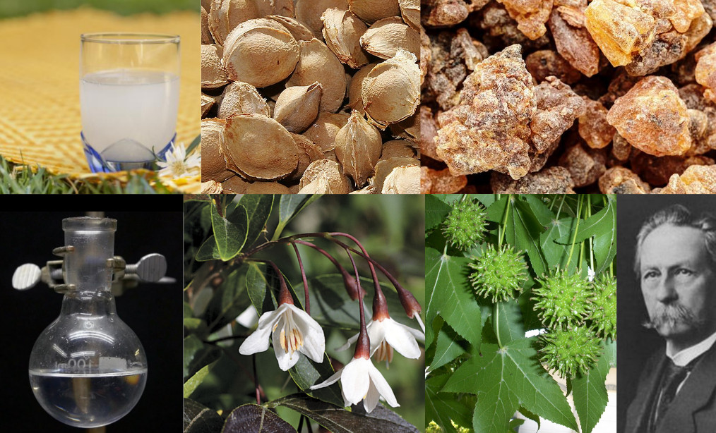 Orzata, delle armelline, delle lacrime di gomma di benzoino, un’ampolla di benzaldeide, Styrax orientalis, Liquidambar styraciflua e, che spia da un angolo, Karl Benz