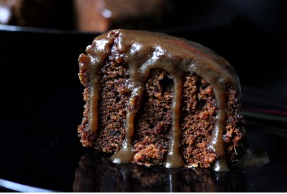 Togliete il dolce dallo stampo o dagli stampini dopo che si sarà un po’ intiepidito. Se avete il dolce intero, tagliatelo in circa otto porzioni. Queste si possono servire subito, ancora calde, coperte di salsa pure calda, ma il risultato perfetto si ottiene lasciandolo riposare anche per un giorno o due, e riscaldandolo all’ultimo momento. Per far questo, procuratevi un piatto che possa andare in forno, con un bordino di almeno qualche centimetro e versateci metà della salsa ancora calda. Trasferiteci subito sopra le porzioni di dolce e versateci sopra l’altra metà della salsa. Se non avete un piatto adatto, potete pure ripiegare su uno stampo per crostate o qualcosa di simile. Al momento di servire, passate il tutto in forno lontano dalla resistenza superiore (magari coprendo con un foglio di alluminio), per qualche minuto. Badate a non far bruciare la salsa sul fondo: buttereste il recipiente! Se le porzioni che dovete presentare sono al massimo due o tre, potete benissimo usare il forno a microonde, che è molto più comodo.