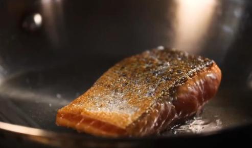 Mi hanno chiesto come si fa a cucinare un semplice filetto di salmone in padella e rispondo volentieri! Per questo piatto sono due gli obiettivi principali: fare in modo che la pelle risulti croccante ed evitare di cuocerlo troppo. Il salmone non è mai troppo al sangue, come sanno i giapponesi, ma può certamente essere troppo cotto, nel qual caso diventa asciutto e stoppaccioso. Il centro di un filetto di salmone cotto alla perfezione dovrebbe a metà strada, nell’aspetto, tra il bordo cotto del filetto stesso e il pesce ancora crudo, un po’ come per le bistecche di manzo.