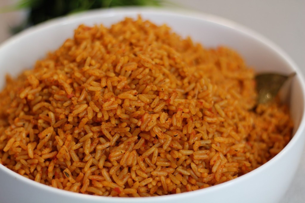 Il riso jollof (jollof rice, in inglese, si legge più o meno “giòlof raiss”) è piatto tipico delle feste, che si prepara perciò di solito in porzioni enormi, sufficienti per almeno cinque o sei persone e che si serve perlopiù accompagnato con stufati di carne molto speziati e platano bollito o fritto. La ricetta che do io basta per tre come piatto unico o per quattro/cinque come accompagnamento.