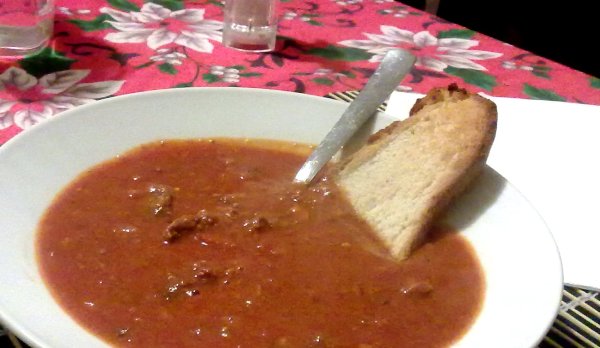 Il gulasch è una minestra di carne tipica dell’Europa centrale; lo stesso nome si attribuisce ad uno spezzatino di manzo diffuso nel Triveneto, che però è alquanto differente da quel che si può trovare oltralpe. Questa ricetta mi fu data da una gentile signora bavarese di nome Helga durante un mio viaggio in Germania e può essere servito come una minestra sostanziosa (lo preferisco così) oppure come un gustoso secondo di carne. Il nome “Pfundsgulasch” significa pressappoco “gulasch di una libbra”, perché quasi tutti gli ingredienti sono previsti nella dose di “ein Pfund”, cioè una libbra, che in Germania vale esattamente 500 grammi.